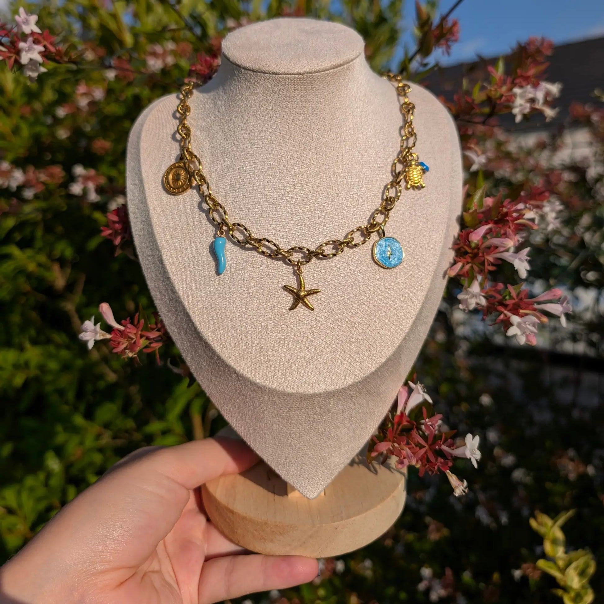Découvrez le Collier Karole, une pièce élégante et prête à porter, conçue pour sublimer votre style. Ce collier est fabriqué avec soin en France, combinant une chaîne en acier inoxydable durable et des charms en acier inoxydable couleur bleue et or. Le mélange de ces matériaux garantit une longue durée de vie tout en apportant une touche de raffinement à vos tenues. Attention : le charm étoile de mer est plus délicat et ne résiste pas à l'eau. Il est donc recommandé de l'enlever avant tout contact avec l'eau.